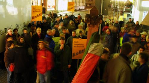 Um den Volksvertretern zu zeigen, dass grosse Teile der Bevölkerung - nicht nur in Blumenrod und Linter - gegen diese Planung sind, organisierte die Bürgerinitiative eine Flugblatt-Aktion, in der aufgerufen wurde, in der Stadtverordnetenversammlung am 10. Dezember 2007 an einem stillen Protest teilzunehmen.